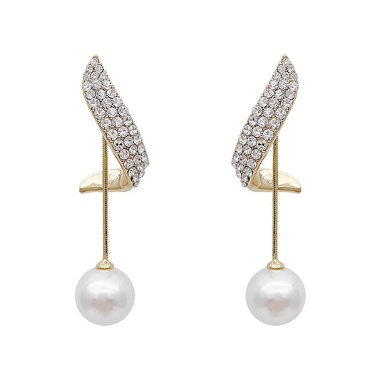 1 Pair Of European And American Simple Temperament Lady Love Pearl Cold Wind Earrings