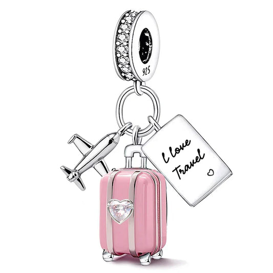 New 2023 Fashion Pink Pansy Flower Pendant Bead 925 Sterling Silver Plated Fit Necklace Keychain Charm DIY Jewelry Bracelet